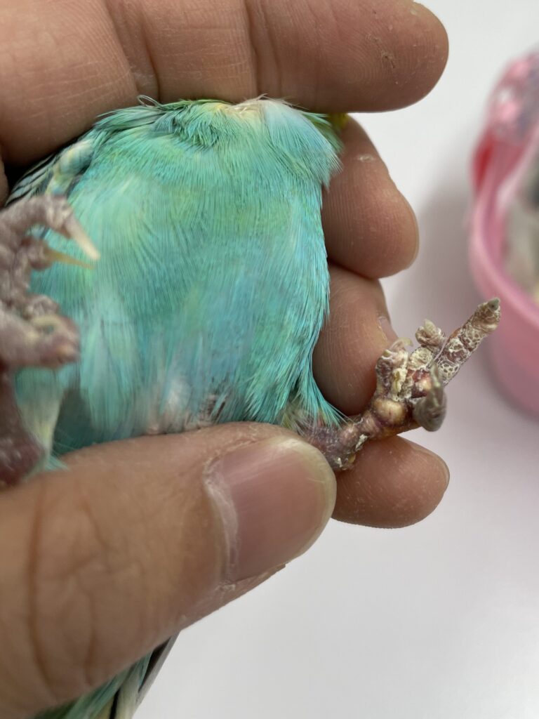 痛風 投稿日 2023年10月26日 更新日 2023年12月19日 著者 s.takagi カテゴリー 症例集 カテゴリー 腎疾患 高尿酸血症から続発する痛風で、こちらは関節痛風による痛風結節ができてしまったセキセイインコです。関節痛風は鳥では脚の足根中足骨の関節部、趾節間関節に形成されることが多いです。熱感があり触ると痛いため、本人が気にしてしまい、出血を伴っていることもあります。